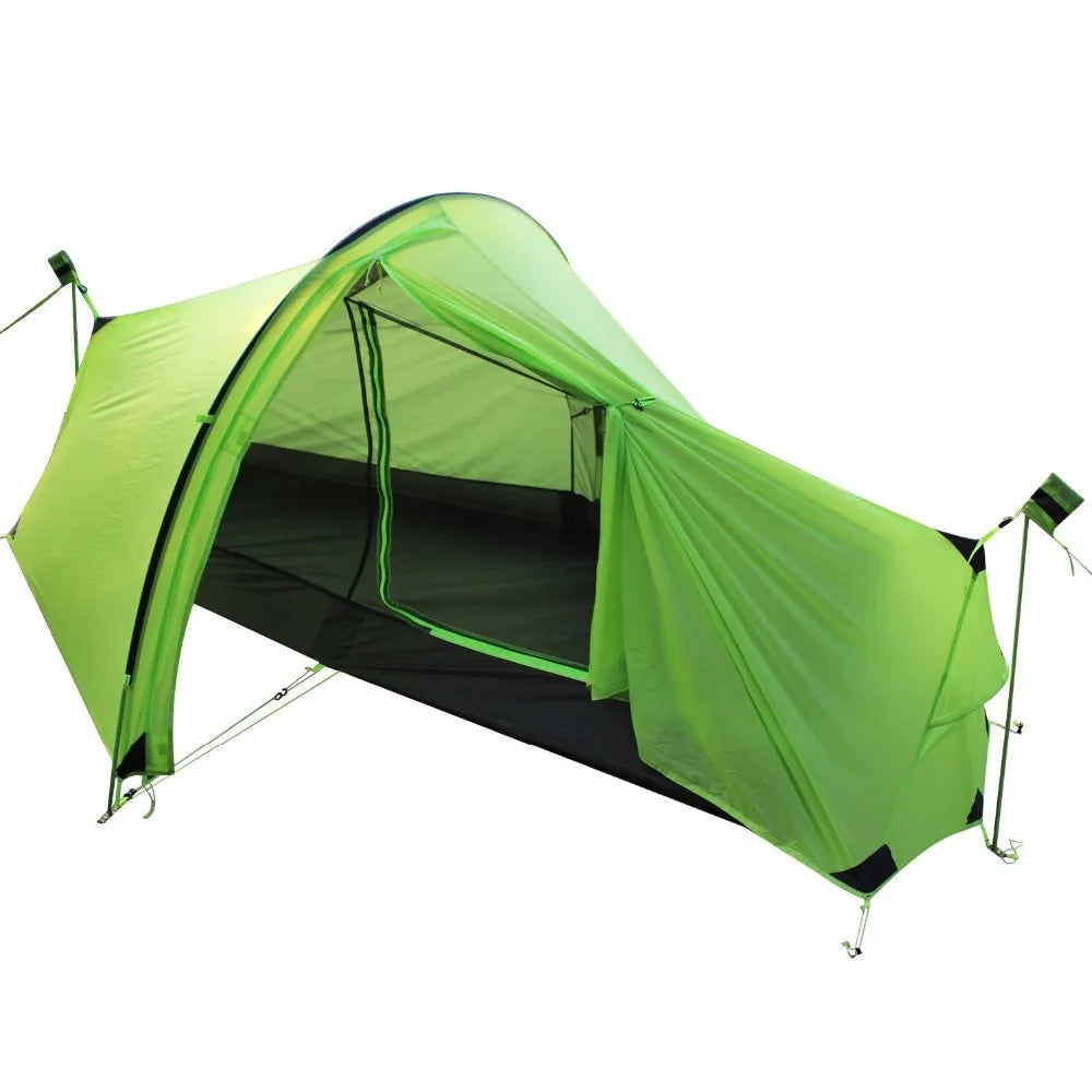 15D Double Layer One Men Single Person Tunnel Backpacking Tent 3 Season For Camping Hiking Travelling Ultralight Silicone Coated