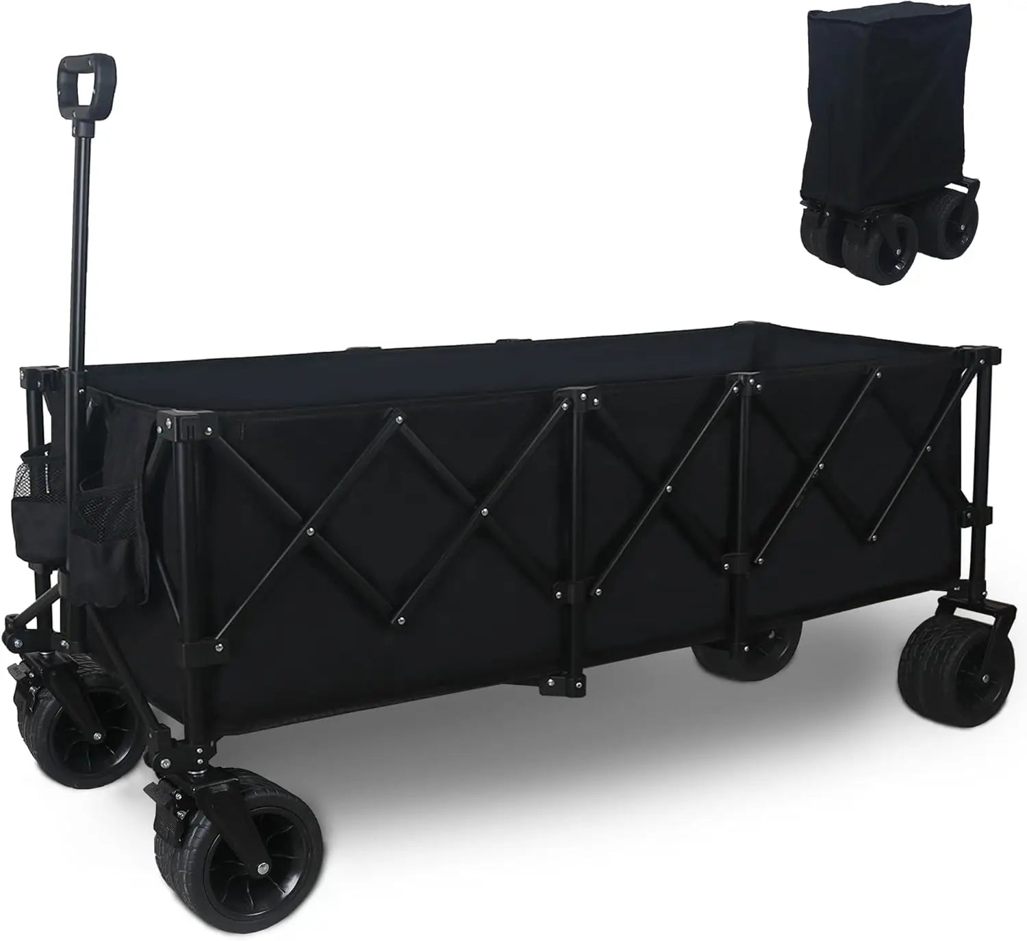 220L Collapsible Foldable Wagon with 350lbs Weight Capacity, Beach Wagon with All-Terrain Wheels & Drink Holders, Heavy Duty Fol