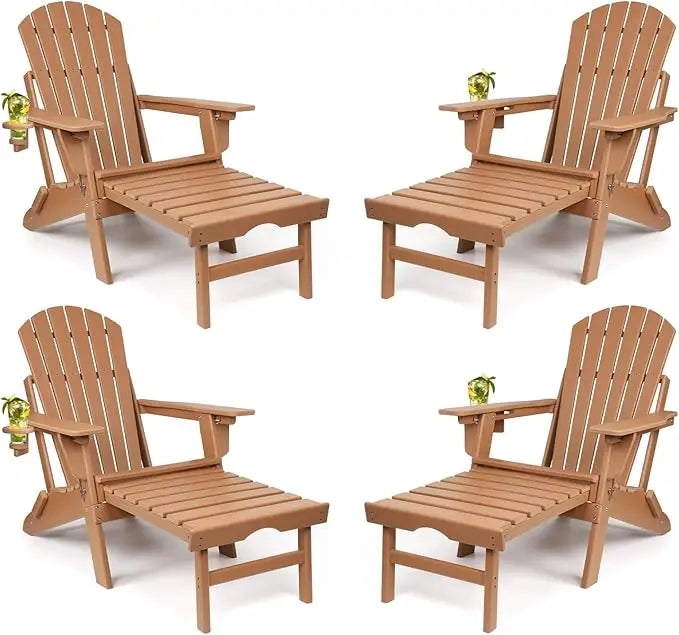 Adjustable Folding Adirondack Chairs Set of 4 | With Retractable Ottoman & Built-In Cup Holder | All Weather Fire Pit Chairs