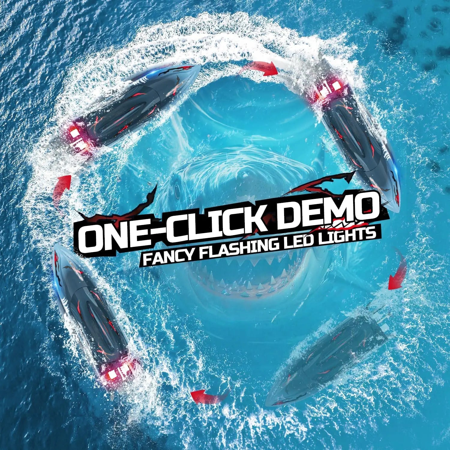 - You and friends can race with 2.4 GHz anti-interference control and enjoy dramatic LED eyes and tail lights for show-stopping on-water performances.