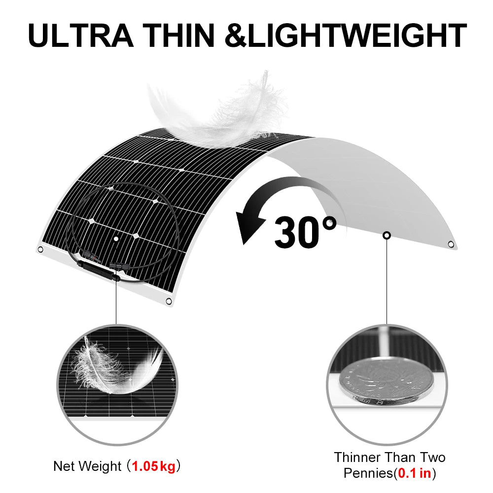 - Flexible, non-folding surface: Flexible panel mounts on curved surfaces or your gear without folding away performance, making setup fast and intuitive.