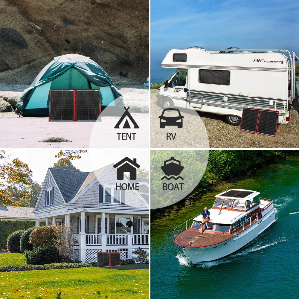 Dokio 18V 100W Portable Foldable Solar Panel with 12V Controller Kit for Family Camping Trips