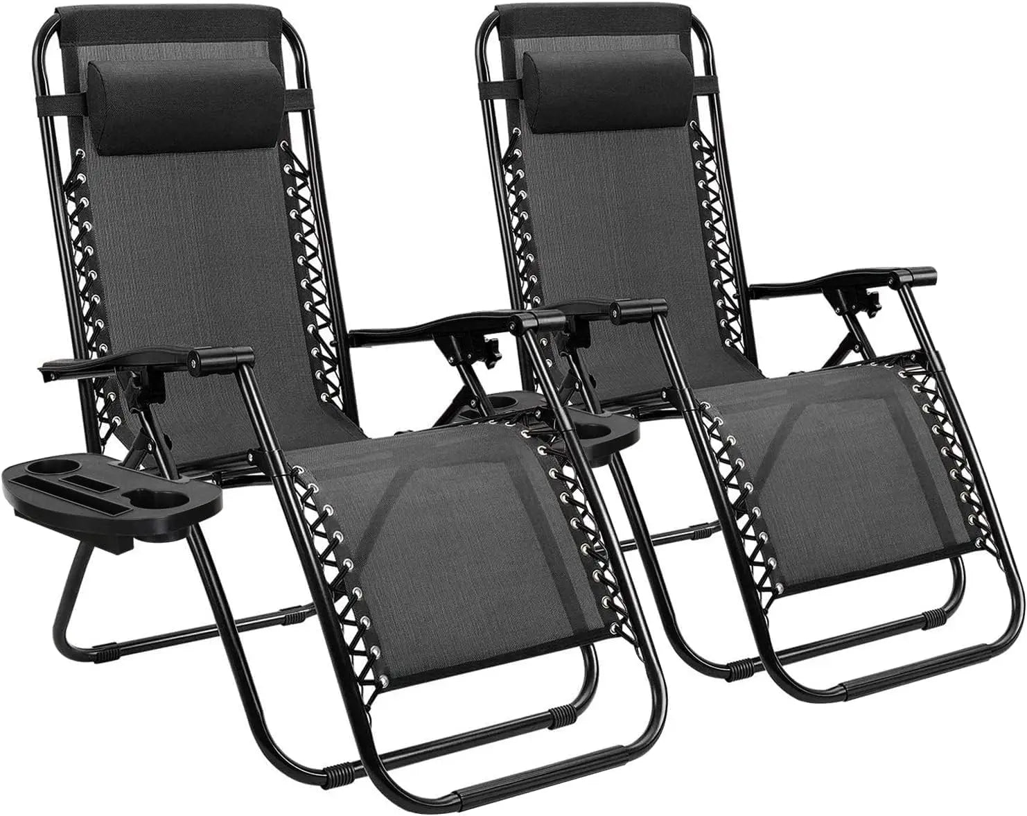 Experience zero-gravity relaxation with a pillow-equipped folding outdoor lounge chair that cradles you poolside.