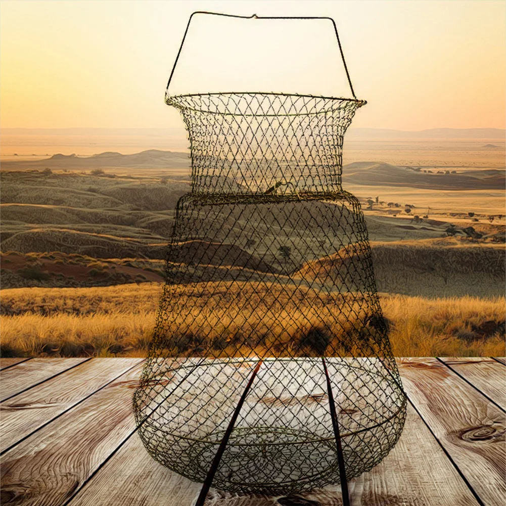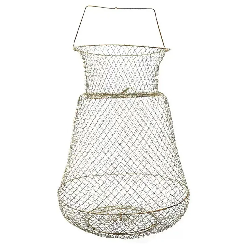 Galvanized Steel Wire Fish Basket Collapsible Fishing Basket Foldable Minnow Bucket Metal Mesh Fish Trap for Outdoor Fishing