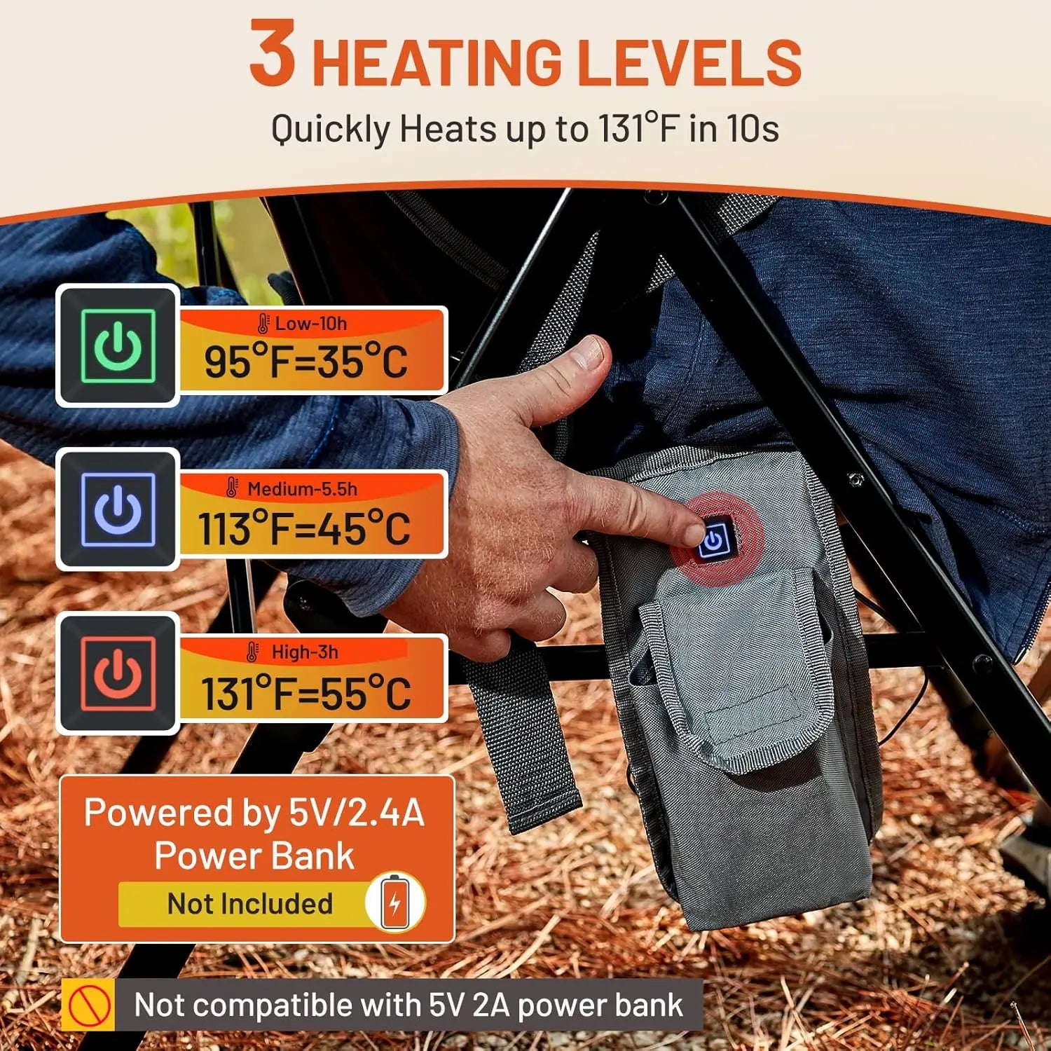 Experience warm, ergonomic comfort wherever you camp, hike, or watch the sunset with the XMSJ Heated Camping Chair featuring lumbar support and a high back.