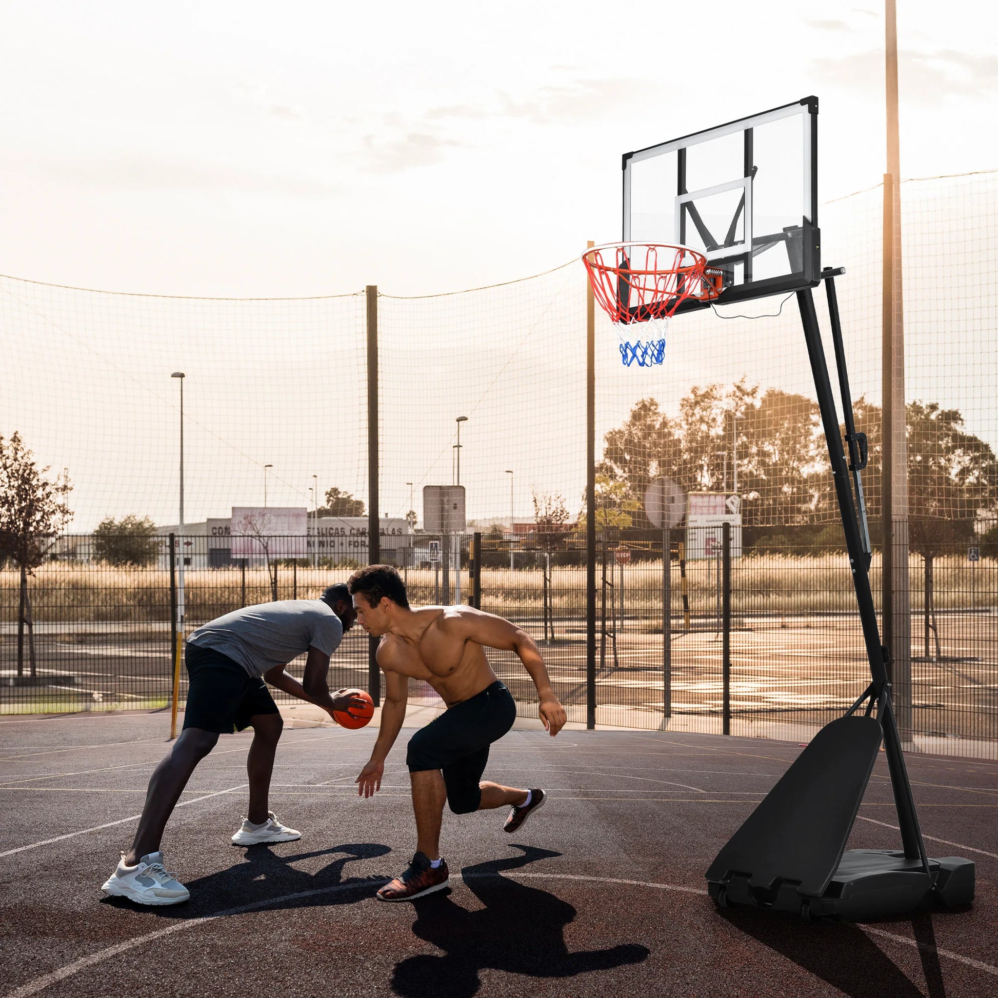 Turn your driveway into a pro-grade court with this portable basketball hoop system, built with bright LED lighting for night play.