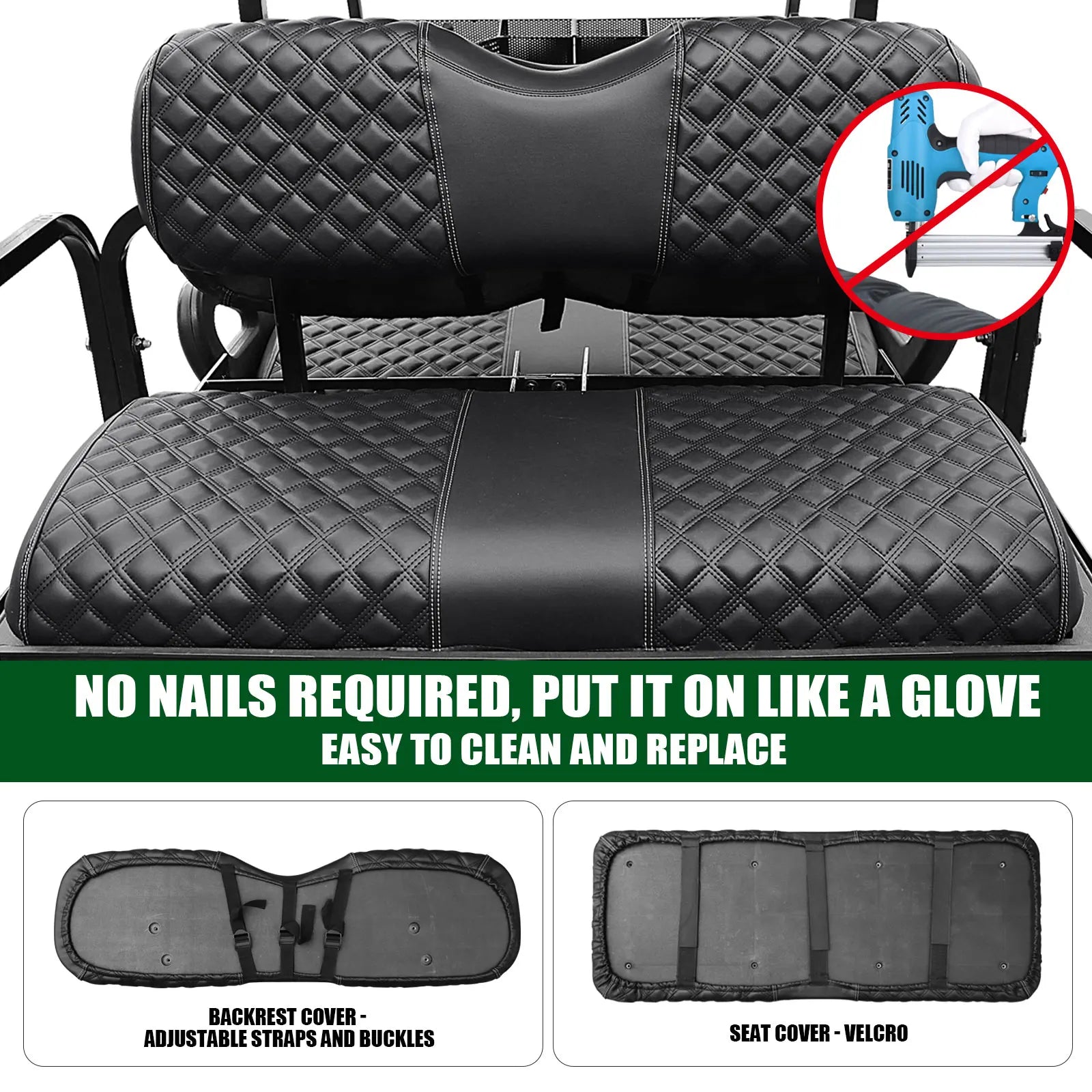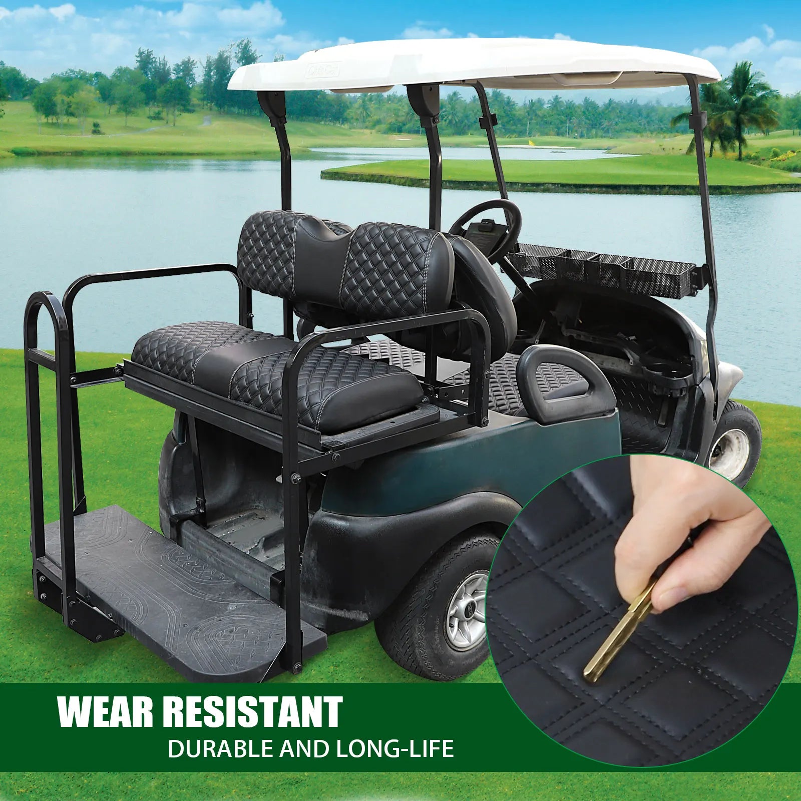 - Universal fit & compatibility: This rear-seat cover works with common aftermarket rear seats for EZGO, Club Car, and Yamaha—please measure your seat before purchase.