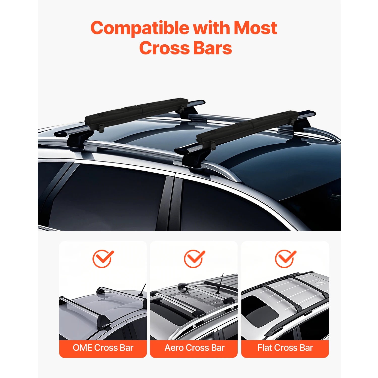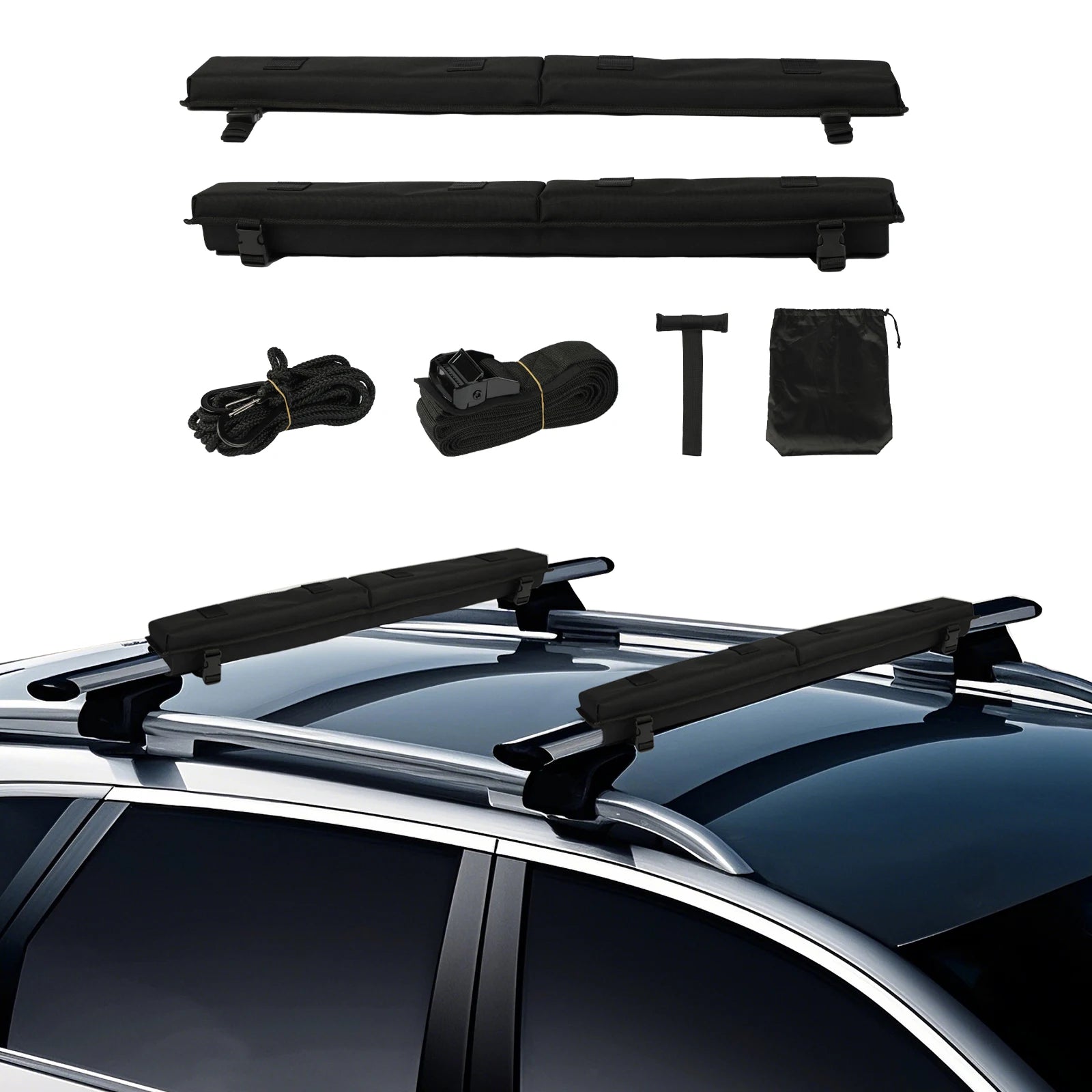 - Universal Fit & Easy Setup: You can use it with most crossbars on sedans, SUVs, and MPVs; you won't need tools—just wrap with heavy-duty Velcro, then secure gear with the included tie-down straps and quick loop straps, supporting up to 176 lbs.