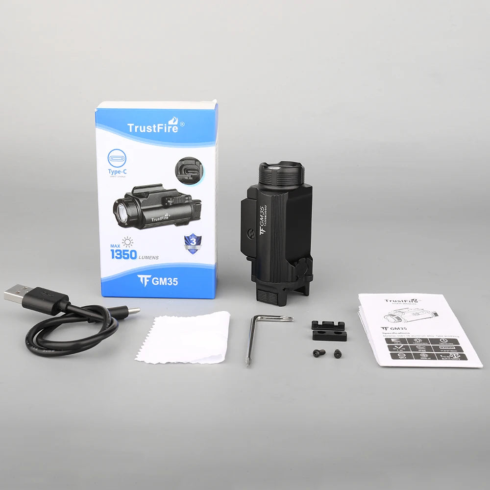 Trustfire GM35 Tactical LED Flashlights Mini Pistol Lights 1350Lumens USB Rechargeable Quick Release Handgun 1913/GL Rail