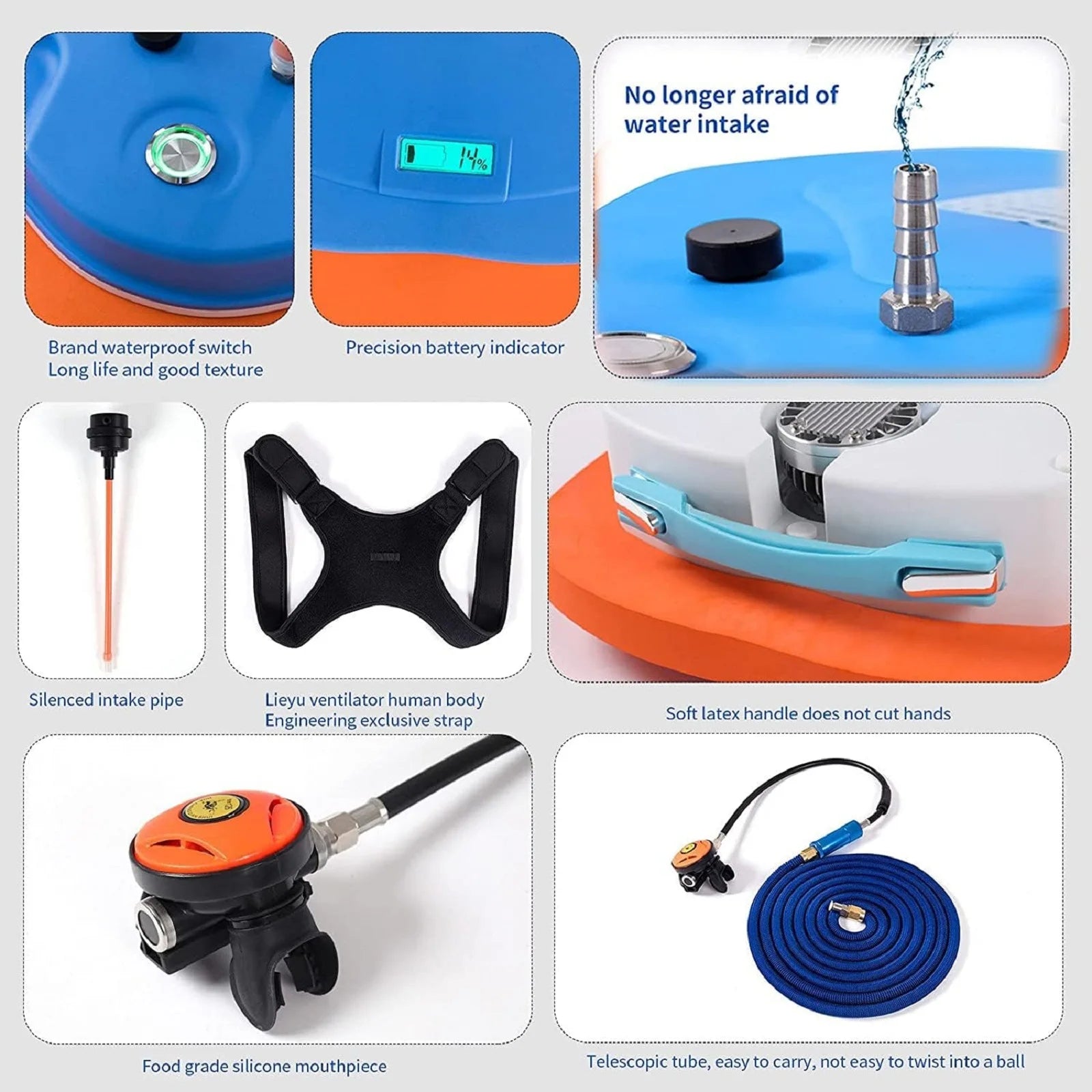 TUDIVING-Scuba Diving Ventilator,Waterproof Portable Rechargeable Scuba Diving Tank with Breathing Regulator,Scuba Diving Gear