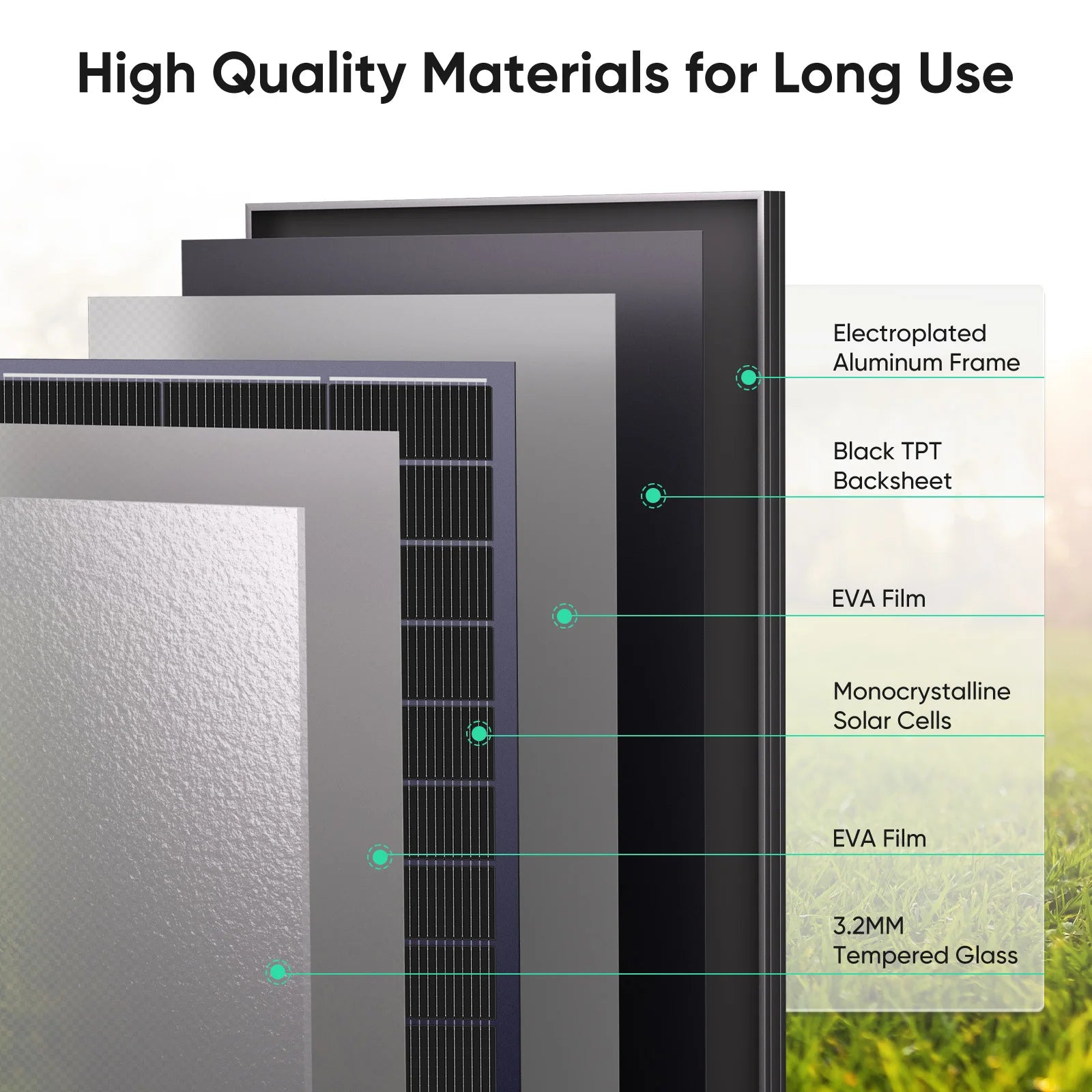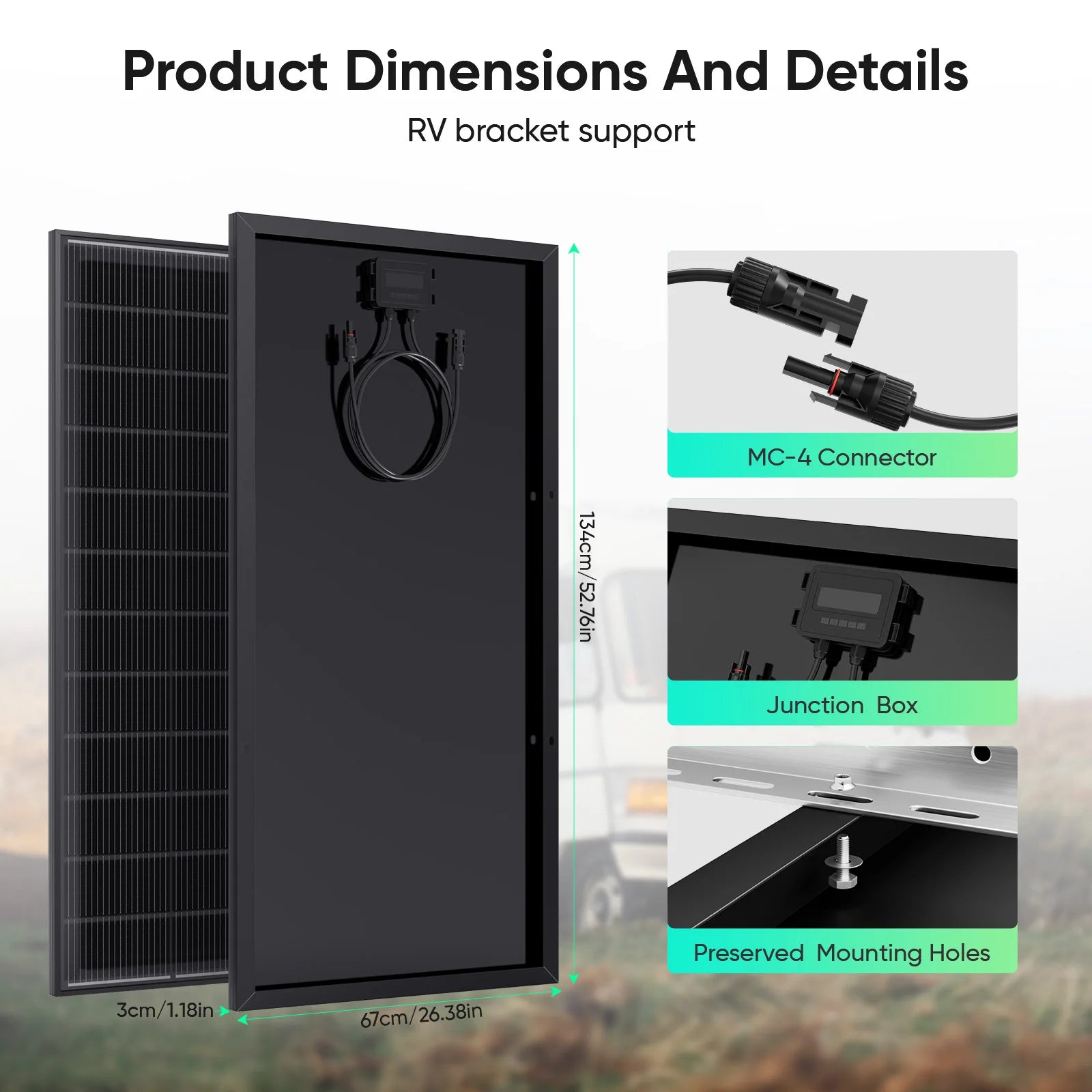 - Rigid, non-folding design with IP65 waterproof rating stands up to sun, wind, and rain for dependable outdoor charging; NOCT range -45 to 80°C ensures stable operation across climates.