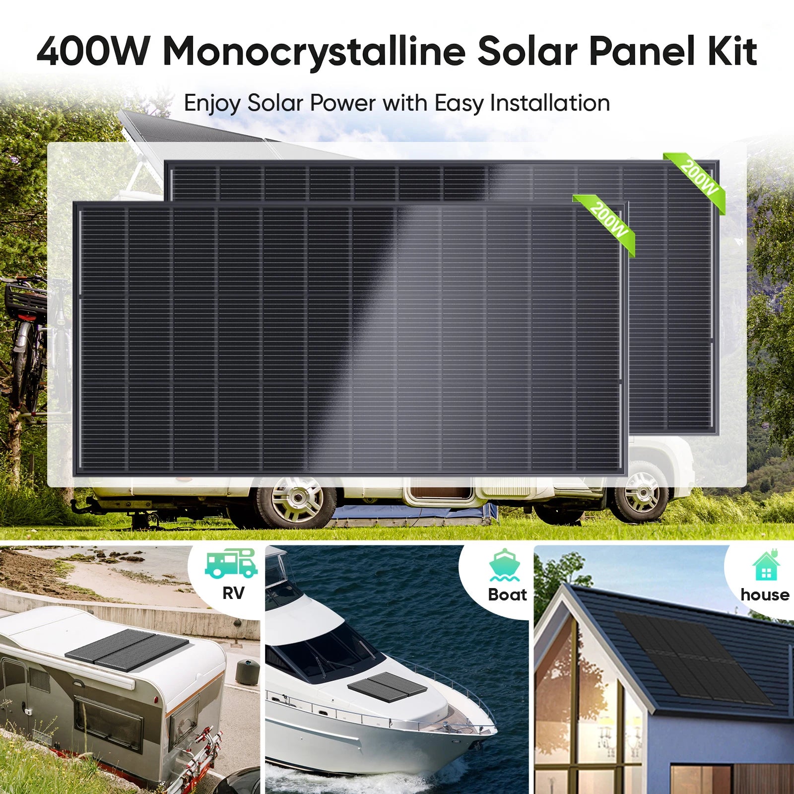 WERCHTAY 2pcs 12V 200W Monocrystalline Solar Panel Module Off Grid PV Power For Vehicles, RV Camper Camping Boat Shed Farm